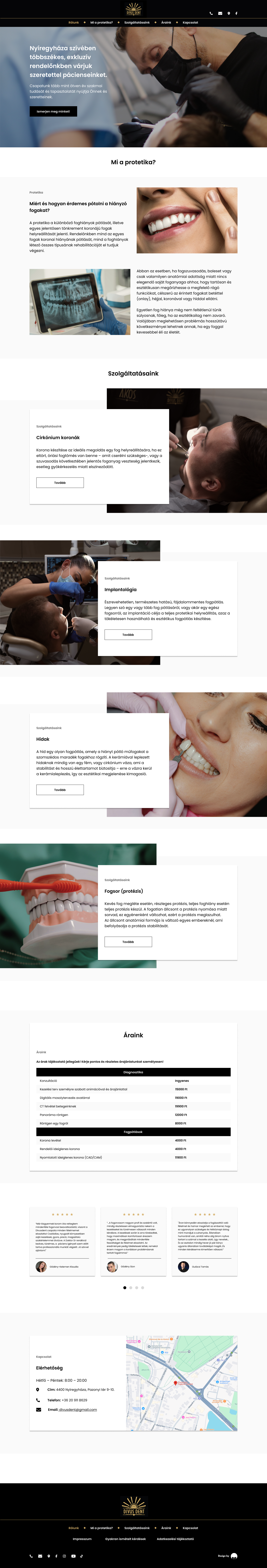 Divusdent is a dental clinic in Nyíregyháza with a long history. To promote their services, they wanted a landing page. They already had their branding and logo, so those were not my work.